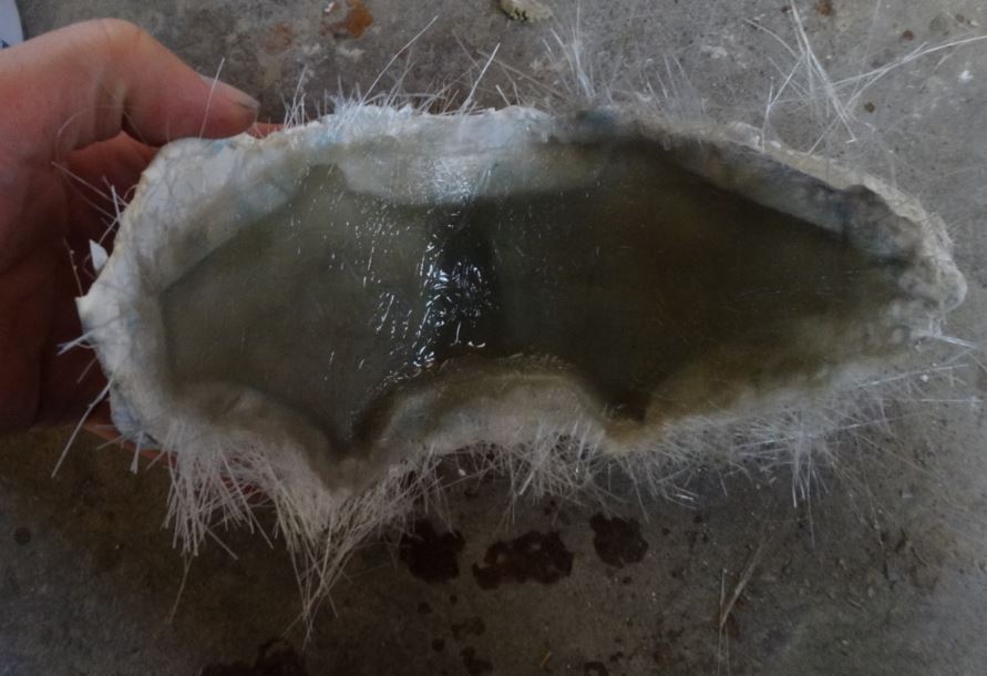 この前石膏型を取ったゴーグルですが、本日FRPの貼りこみをしました。