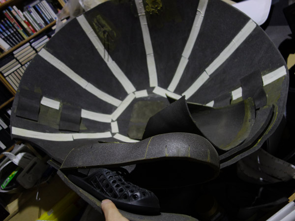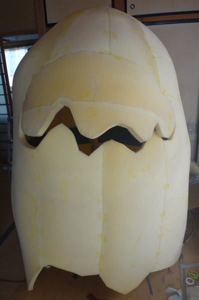 今月の半ばまで製作していたヒーロースーツがかなり手こずってしまい、 予定の日程よりも10日以上のオーバーとなってしまいました。 自分でいうのもなんですが出来は頭でイメージしたものを超える仕上がりとなりました。 ここでお見せできないのが残念なのですが・・・ ということで、一週間前から「もじゃろー」を再開して製作しています。 今回は表面の生地の指定が変わってしまったこともあり パターンを最初からとりなおしました。 生地の性質が違うのでこれはやむをえない作業ですね。 薄手の生地になったため、黄色い部分の下地が透けないように、 そして時間によるウレタンの劣化変色にも対応するため 下地に白い生地を貼りこみます。 その下地の生地ですが、予算の都合もあり どのような生地を使おうかと悩んでいたのですが なんと通常はメーター4000円もするスーパーストレッチが 半額の2000円で販売されているのを発見! 迷わずその場でその生地を購入! で、実際に使用したのですが、下地の発色だけでなく 表面にすごい弾力が生まれ、とても気持ちの良い肌触り感となっています。 それと、通常タイプ(アクションタイプではない方)の もじゃろーくんは正面に視界がありません。 今回はこれに対応する仕掛けを仕込むつもりでいます。 まぁ、それに関してはまた後で・・・・ 群馬県伊勢崎市の「もじゃろー」の製作過程を動画でアップしていこうとおもいます。 ーーーーーーーーーーーーーーーー 動画はこちらになります。 https://www.youtube.com/watch?v=PBbvgrrGF3E 注*なぜかマックからHDでのアップができなくなったので。 | プロフィール
